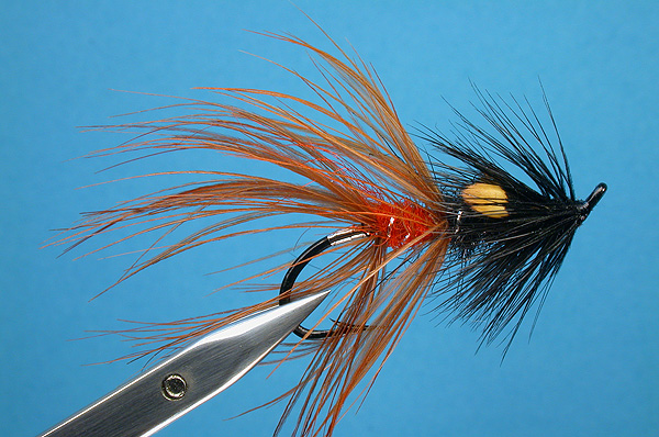 | Rear hackle: | Small golden pheasant red breast feather |