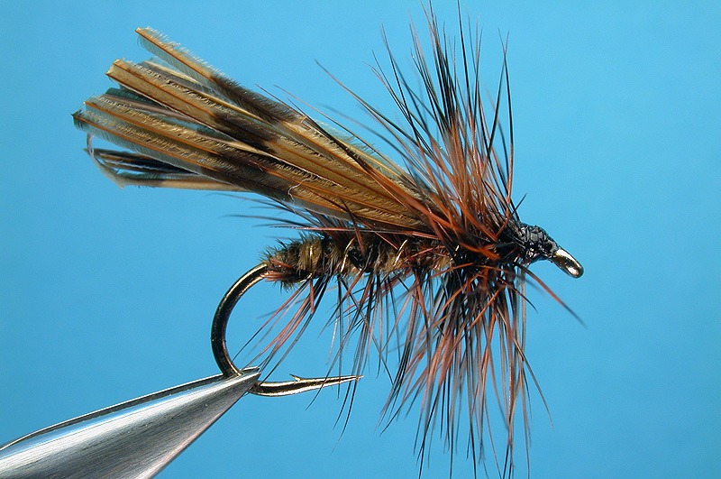 | Body hackle: | Whiting grizzly hackle dyed red brown |