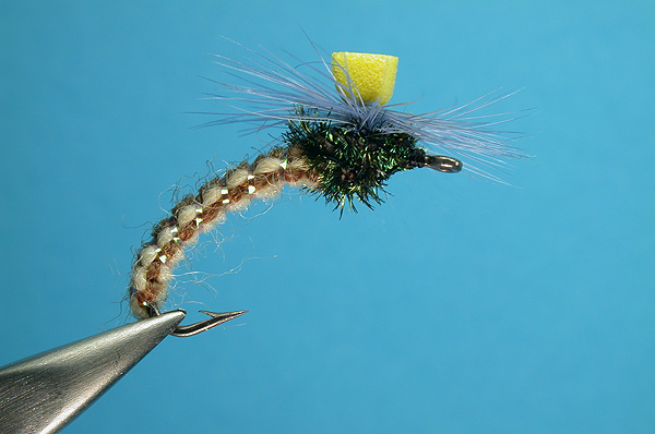 | Abdomen: | 3 strands each of two colors embroidery thread (I use Anchor) Dark on top, light underneath |