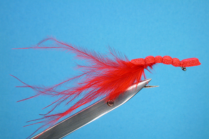 Red foam to cover back of hook extending over the bend of hook and over the eye