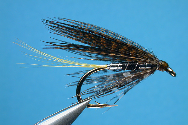 | Body: | Flat silver tinsel, Black tying thread, Flat silver tinsel (equal parts) |