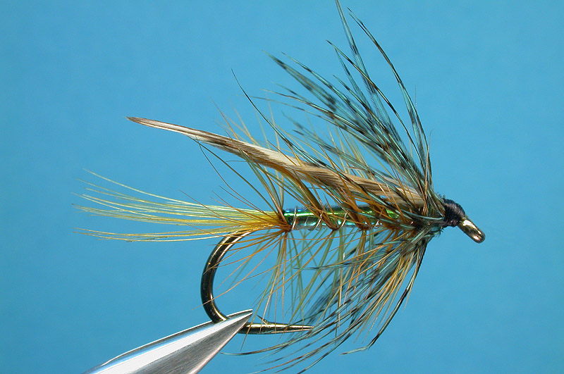 | Body hackle: | Red brown cock tied in by the tip |