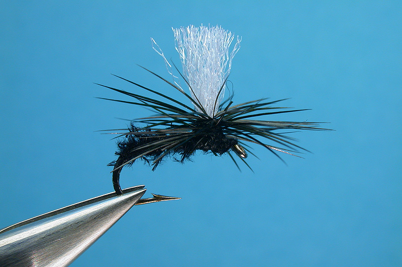 | Hackle: | Black, parachute style |