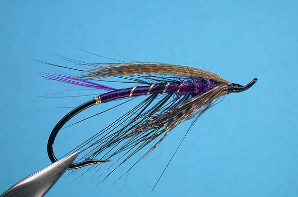 | Tip, Tag, & Tail: | Fine oval gold tinsel followed by purple floss and purple hackle fibers |