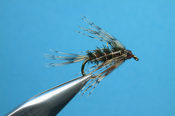 | Hackle: | Brown partridge back feather extending to bend of hook |