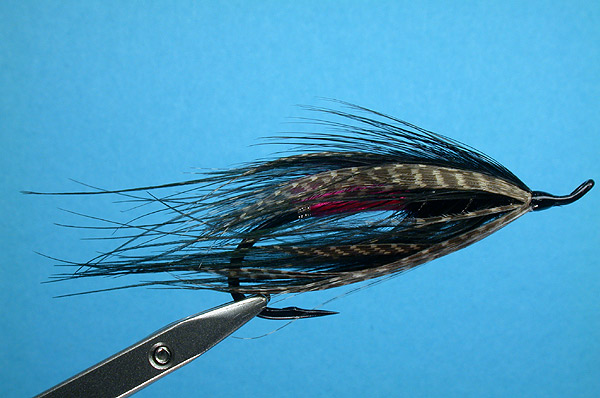 A Syd Glasso style spey fly tied in the color scheme of the very popular Red Butt Black Bear salmon fly.