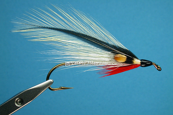 Note: The original calls for white bucktail in the wing, and red dyed golden pheasant crest for the throat. |