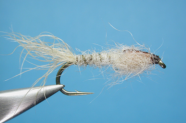 Note: This fly is tied without weight, and shaggy to trap air. It can be fished as a dropper below a small dry because it suspends well just below the surface during the average drift, and rarely drags the dry under water. |