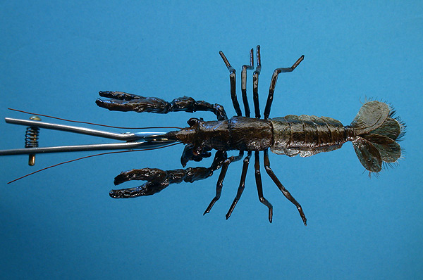 | Claws/pinchers: | #15 monofilament covered in silicone caulking |