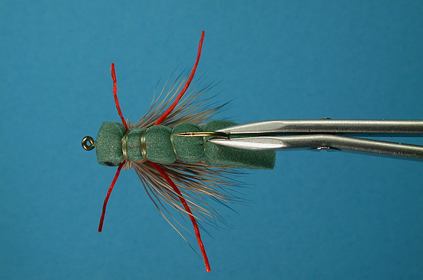 Note: This smaller version is tied on a Tiemco 100 hook in size eight. The standard shank length makes a smaller fly while preserving the hook gap. I commonly use the 100 when tying smaller hoppers.