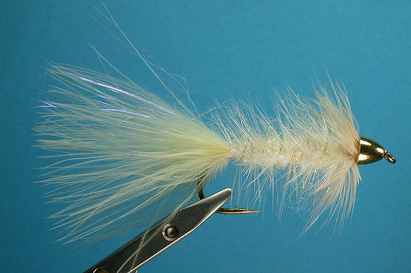 | Tail: | Cream marabou plus a few strands of pearl UV Ice Wing on top |