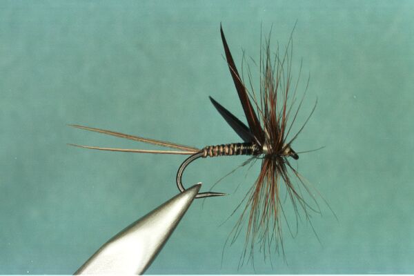 | Tail: | Medium dun spade hackle fibers |