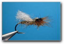 | Body: | Fly rite Poly dubbing in the following colours: Light tan, dark tan, rusty olive, medium brown and golden olive |