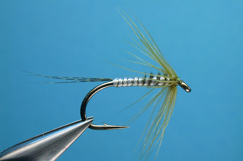 Butts of tail barbs are wrapped around the shank to shape a slender thorax |