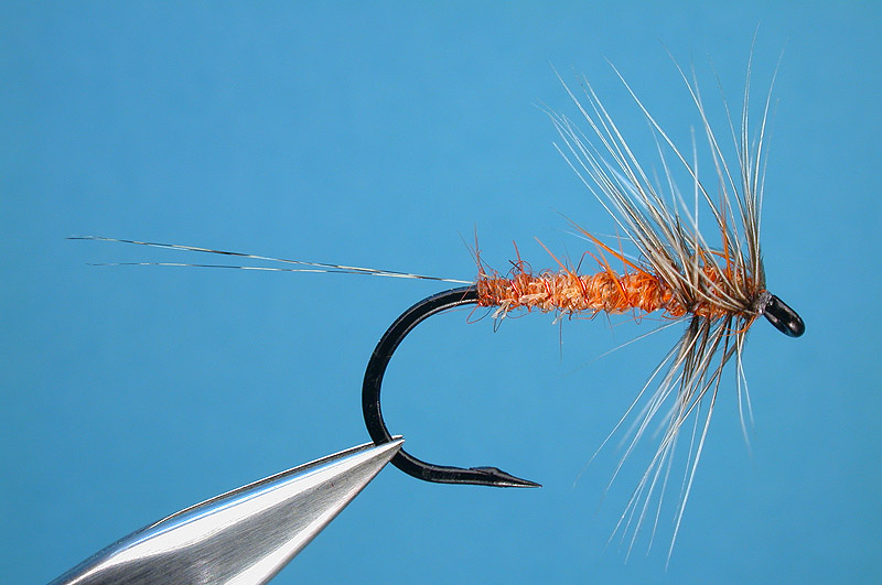 | Body: | Synthetic dubbing, orange; pine squirrel, cinnamon - mixed |