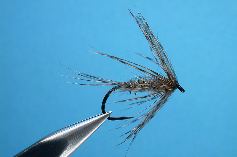 | Hackle: | Whiting Coq de Leon cock, dark pardo, mottled shoulder feather |