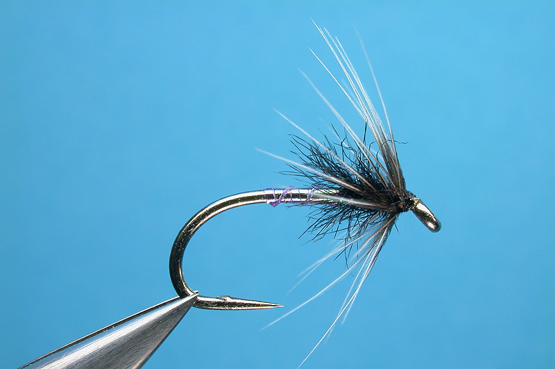 | Thorax: | Ostrich, black - twisted around tying thread |