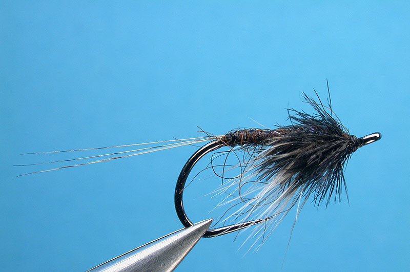| Abdomen: | Holographic tinsel, black; alpaca, brown, sparse(!) - in split thread - then twisted together |