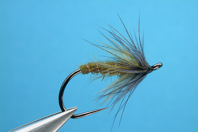 | Thorax: | Marabou barbs, olive |