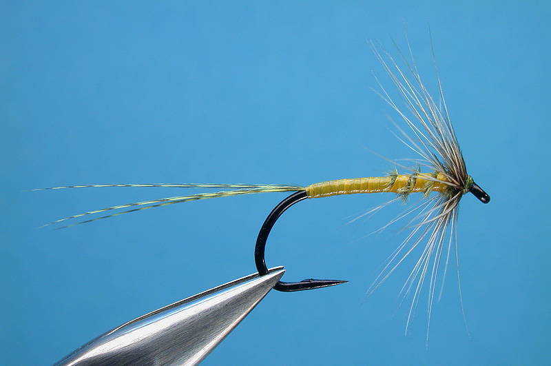 Note: The body wraps are in touching turns along the abdomen, then start to open slightly more along the thorax area to allow the olive pintail barbs thorax to bleed through some.