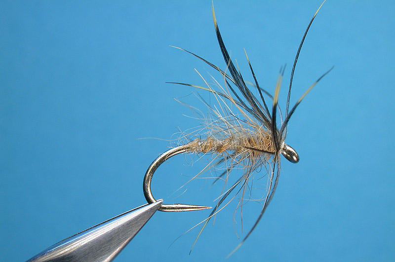 | Rib: | Fox squirrel, dyed light brown - inserted into split thread, twisted |