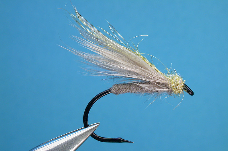 | Wing: | Bunched lower barbs of the Whiting Bird Fur hackle |
