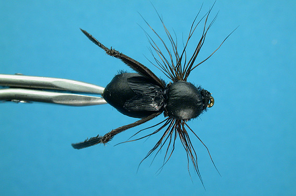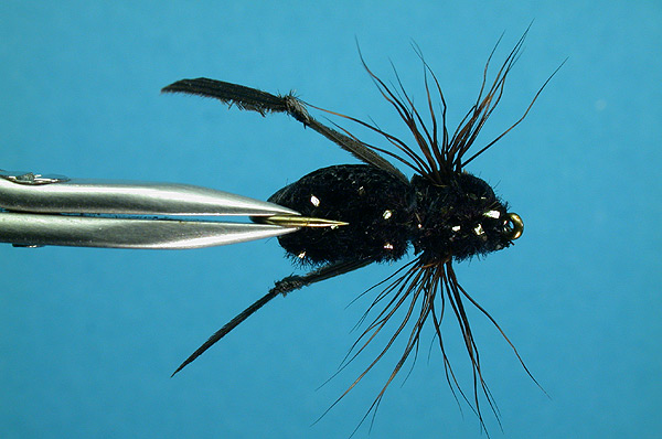 Notes: Right time to use this like other terrestrials is Jully and August when they are in abundance near water, and their mishap to land on water surface is almost routine. During this time trout instinctively give good respons even when some other water insects could be on water, but fat body of Black Cricket, its sharp silhouette and long back legs are good triger for trout. Recomended casting slighly upstream of the point where trout are feeding, then try to imitate its struggle-helpless movements with short "twitches" |