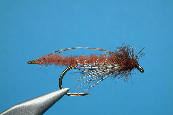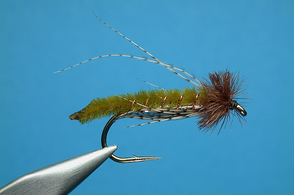 | Rib: | Copper or gold wire to hold the chenille on top of the hook. |