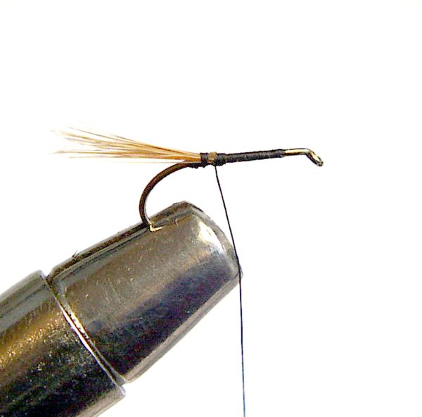 Tying instructions: Step by step photographs - John Morton Place hook in the vice, holding the hook at its bend in the vice jaws and the point covered by the jaws. *** The Underwrap *** Starting 6mm back from the eye of the hook lay down a close wound bed of tying thread along the whole length of the hook as detailed in lesson one; to a point halfway between the hook point and the hook barb. Leave at least one millimeter of clear hook at the eye of the hook ![]() Make a small thread wraps bump where the tail fibers will be tied in. This allows the tail fibers to fan easily. ![]() *** The Tail *** From the side of the neck cape of a brown rooster, select a feather. These feathers on the side of the cape are stiffer than elsewhere on the cape and have little or no soft center web or `flue' as it is often referred to. In literature these feathers are often referred to as 'spade' hackles. Strip off some of the base, hold the feather by it's tip in your right hand, stroke the spicule’s rearward with your left hand to `open' the feather and pull off a pinch of feather with your left hand. Snip off the rough base where it has torn away from the central spine plus any soft basal flue if you didn't use a side cape feather and mount it on the hook with three fixing loops, allowing the tail to be equal to the length of the hook. Hold the tail fibers firmly in the left hand, and wind rearward to just at the base if the thread nodule. Release the left hand and make one more turn rearward into the base of the thread nodule. Watch the tail open and flare outward to provide a wide platform at the hook rear for stabilizing the fly when it is on the water If you have followed this instruction exactly as you have read it, then there will have been no need to change hands or turn the material over to achieve a position where it can be successfully applied to the hook. You r fly should now look like the picture, and be ready for mounting the quill body and front Hackles. This is the whole point of tuition by technique tying, and enables the tyer very quickly to attain `professional' status in the quality and appearance of their flies. Your fly should now look like the picture. ![]() *** THE WING *** I have seen many ways and methods used to wing a dry fly and all of these have depended on continuous practice to achieve a good pair of unsplit wings, sitting upright. The following method is almost foolproof, and ties perfect wings every time, for both beginner and advanced tyer alike. Start with returning the thread to a position one third of the way along the hook shank from the hook eye. You can also, if tying a batch of flies and doing wings only, start with the first tying thread winds at the eye of the hook, winding back ten turns and then advancing three turns to achieve the correct position on the hook to mount the wings. This is where the first tie-down loop will be placed. Preparation of the feather to be used and the right "dressing" of each wing is most important, and it is this care that will ensure that the wings you tie will look and sit well.
