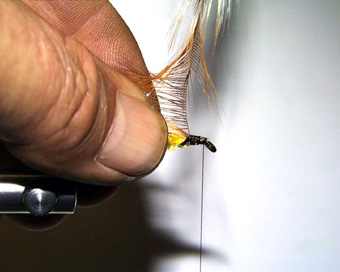 | Wing: | Honey Grizzly 4 feathers two per side |