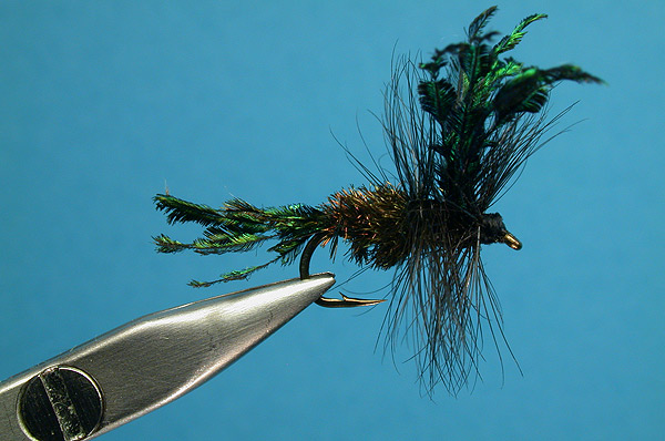 Note: Fantastic little fly that works well on still waters. Probably taken for a beetle or something similar as a dry. The wet version is an effective pattern to retrieve slowly over weedbeds. Possibly imitates a small snail. A black bead headed version in size 16 works well in streams. |