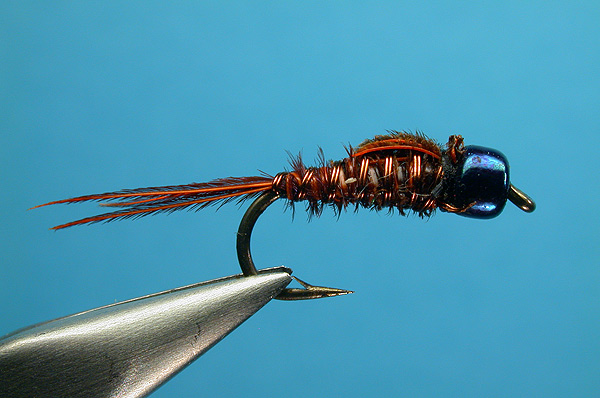 Note: Imitates a small orange mayfly nymph. I like to keep it as slim as possible |