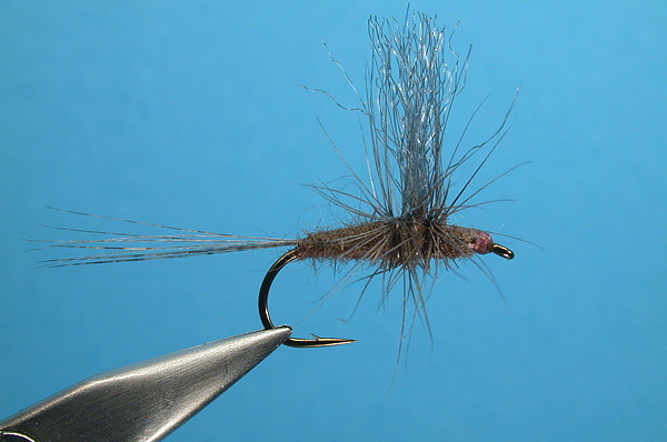 Note: Either clip the hackle underneath, or leave as is. Imitates a smaller mayfly that hatches early season. |