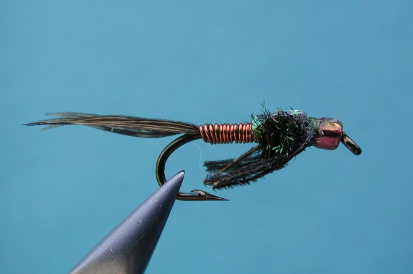 - Tie in flash back and peacock herl. Bring the pheasant fibers forward to eye