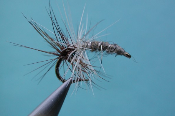 | Tail: | brown hackle by bend, white hackle next (though some say that it actually should be the other way around) |