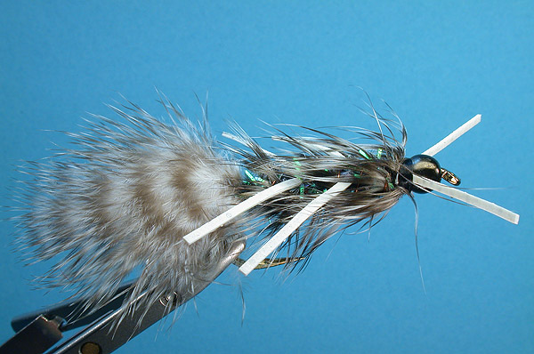 | Body: | Black Green Glo-Brite chenille with palmered Grizzley hackle |