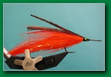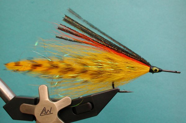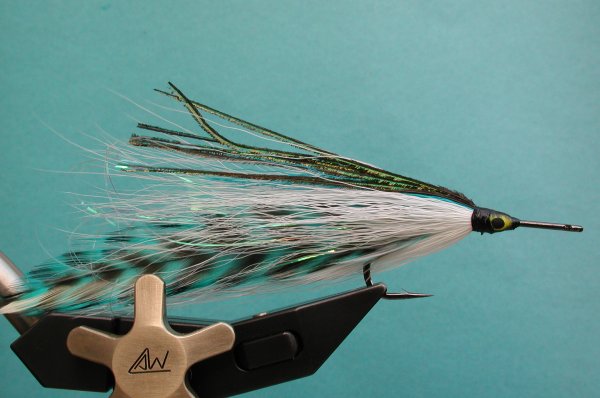 | Wing: | 6 saddles 3 each side , flashabou, darker bucktail, peacock herl | |