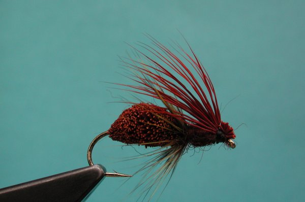 | Body: | 3 parts - brown deer spun and trimmed, brown hackle, brown dubbing |