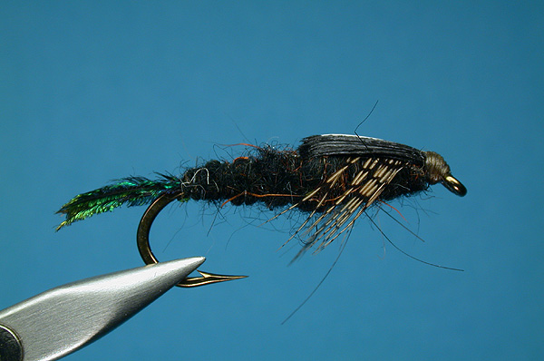 | Thorax: | 80% Black Dubbing, 20% Reddish Brown Rabbit |