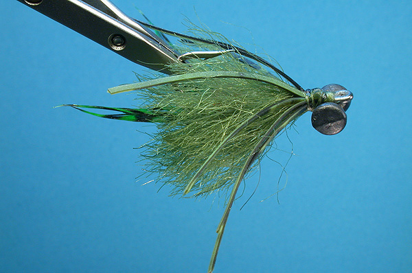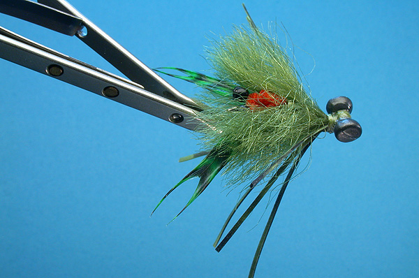 | Claws: | Grizzly hackles, dyed green, coated with flexament |