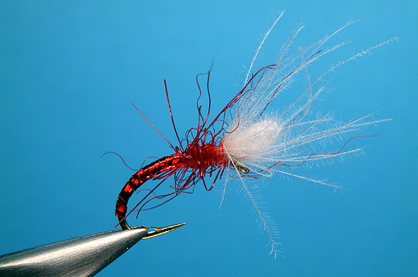 | Wing: | white CDC, tied in over hook eye, then doubled back to form air bubble | Back to Thumbnails |