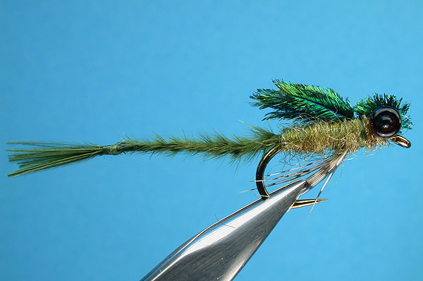 | Extended body: | Olive marabou, braided together with a strand of 10/0 mono |