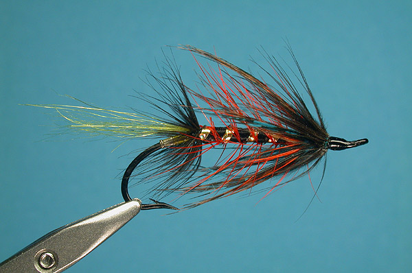 | Hackle: | Brown dyed teal, blue Guinea fowl and black hens hackle. |