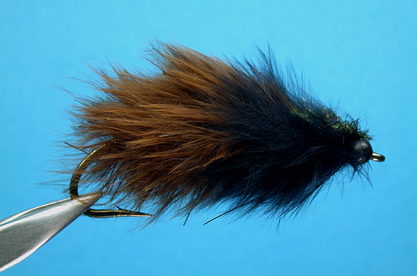 | Abdomen: | Marabou in dubbing loop, wound forwards and pinched to shape |