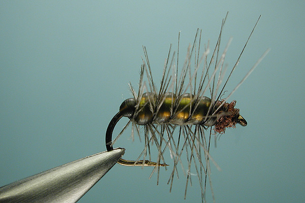 Coq de leon indio acerado trimmed in tapered shape and palmered over body