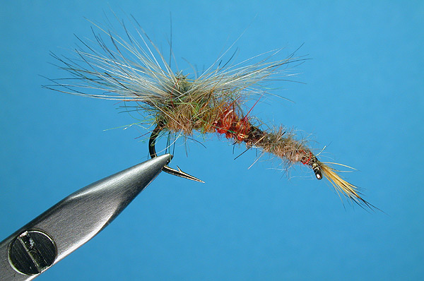 | Thorax: | mix olive/amber/orange seal fur & hare's fur |
