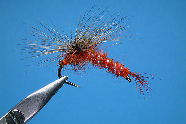 | Abdomen: | claret hare & claret seal mix |