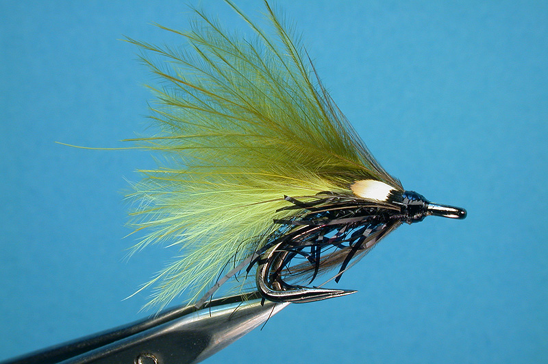 | Wing: | 3 layers of marabou - Flou yellow peril,medium olive,dark olive |