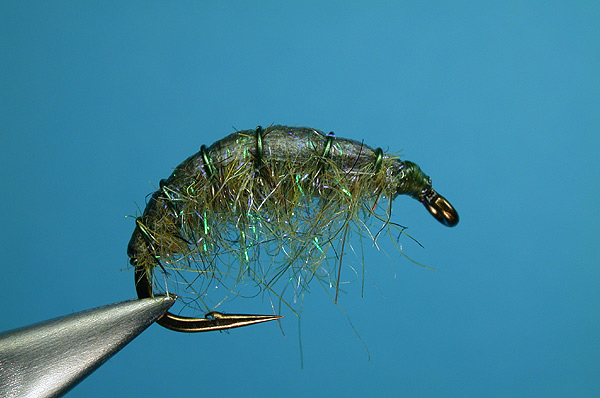 | Body: | 50% Wapsi Crawdub, Olive; 20% #5 Hare-tron; 10% Olive Ice Dub; 10% Peacock-Black Ice Dub; 10% Light Olive UV Ice Dub | Back to Thumbnails |