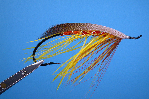 | Hackle: | yellow cock hackle, over wool |